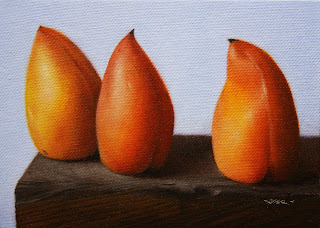 I started with the usual dry brush approach using no mediums and just a bit of raw umber. Then I started on the cherries all at once just stating the general colors, I'm not stating any of the darker and lighter tones yet.